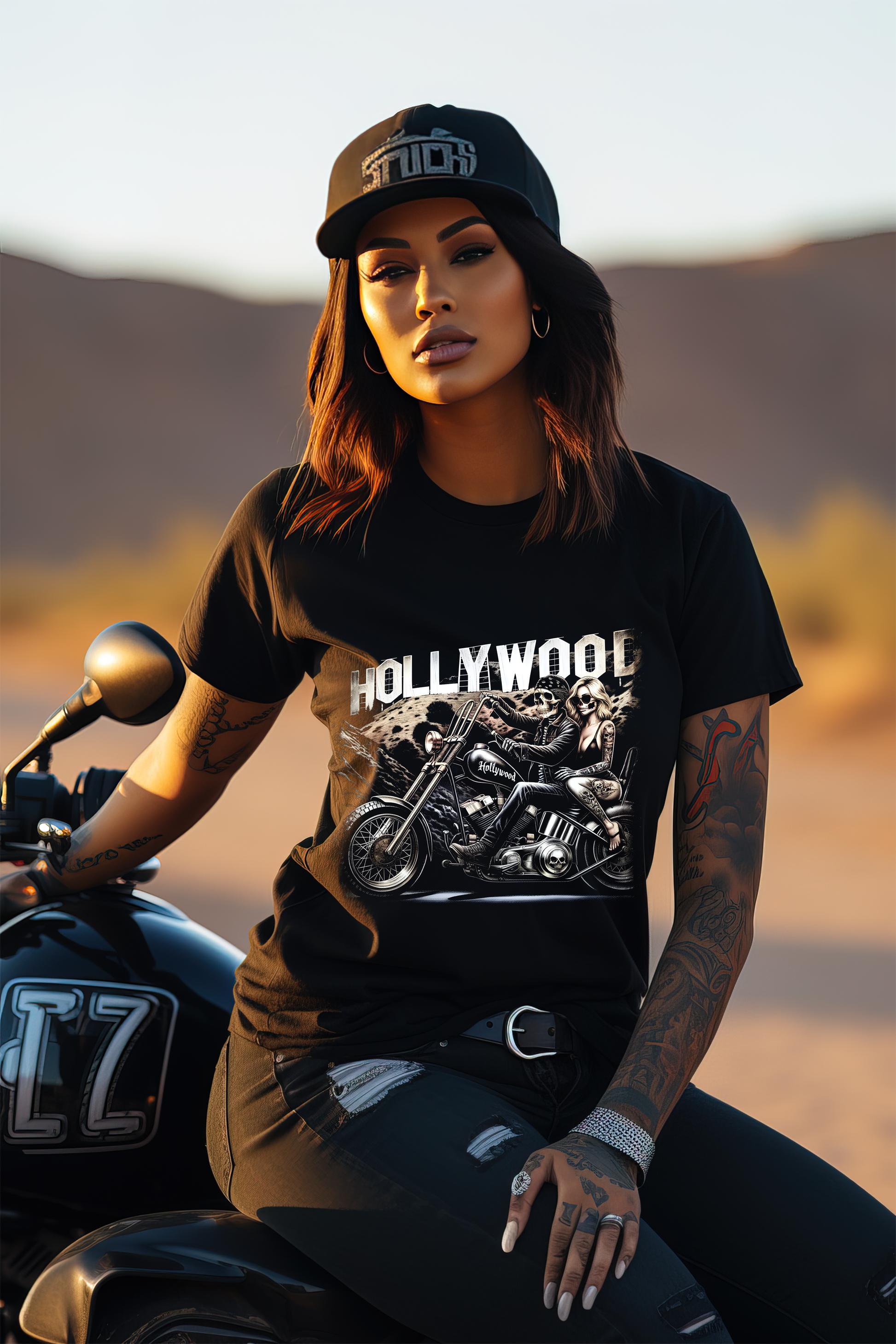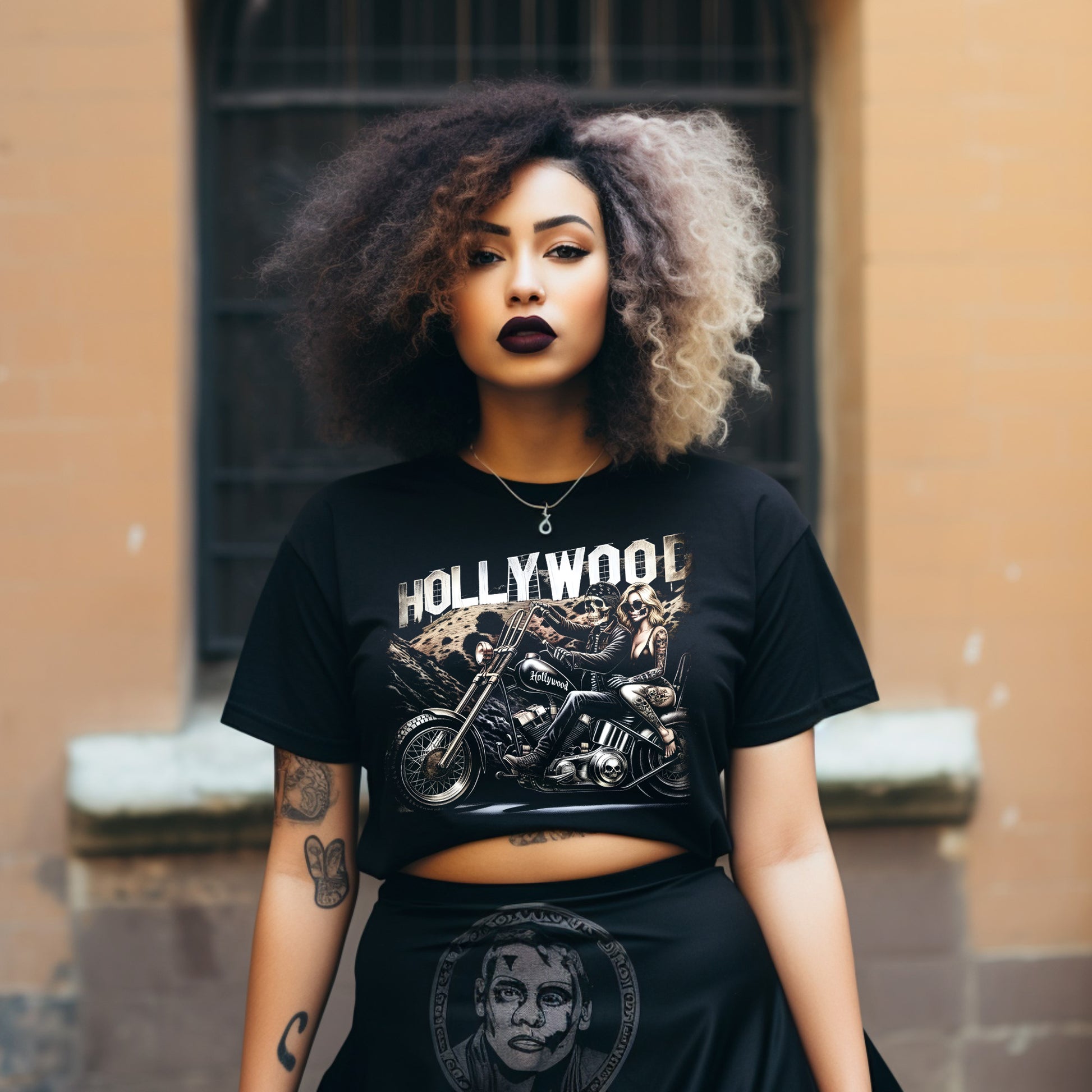 Biker Babe Motorcycle Shirt Hollywood Sign