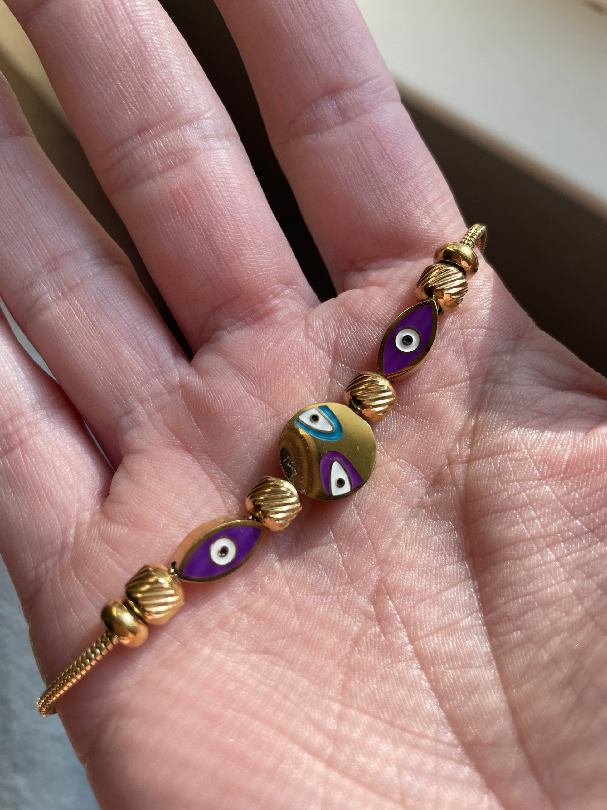 18 karat gold evil eye clasp bracelet. Fits up to size 7.