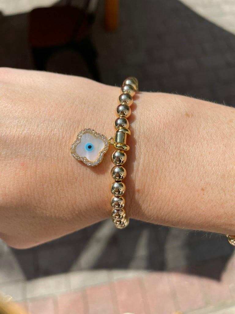 Evil Eye Clover Pearlescent Charm Bracelet 6mm