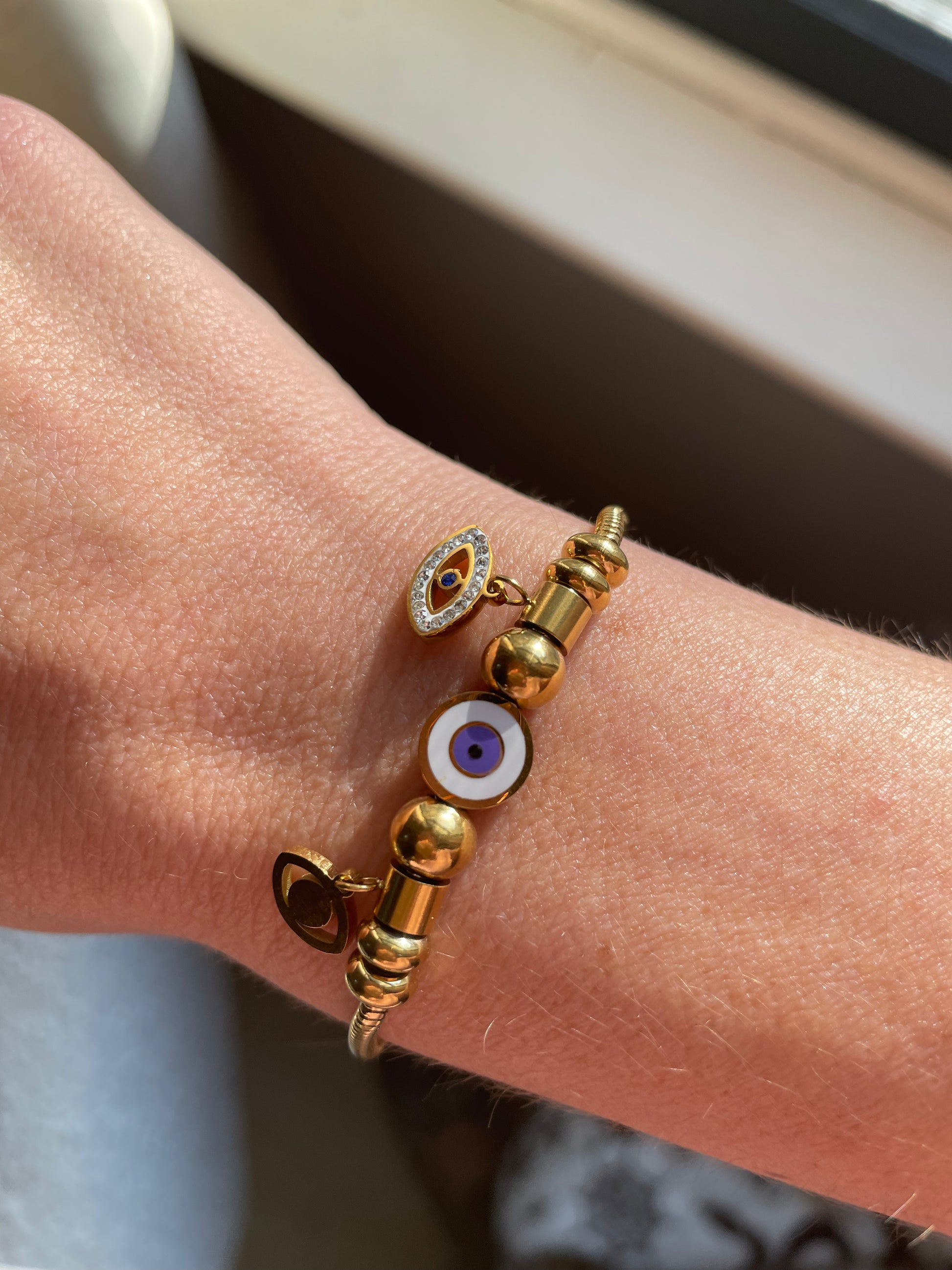Evil Eye Rope Clasp Bracelet with Purple Accent charms
