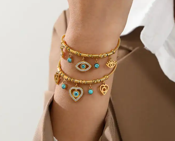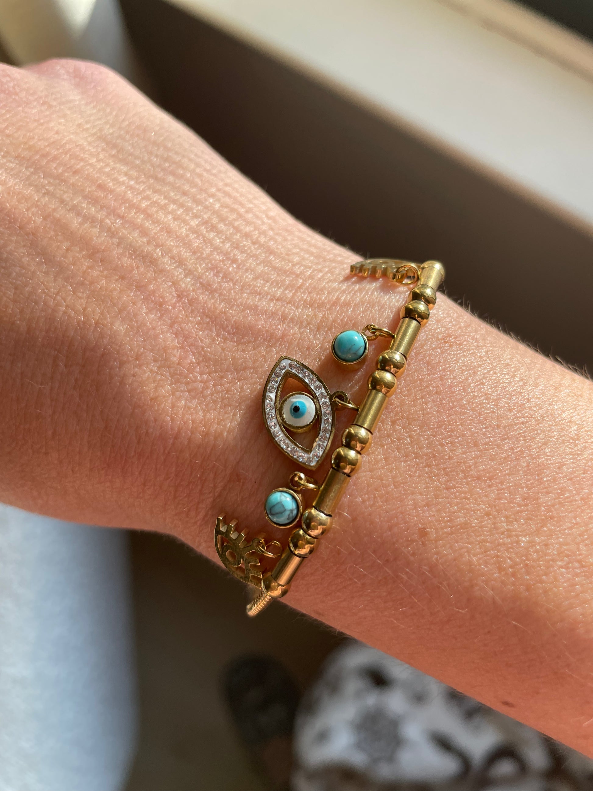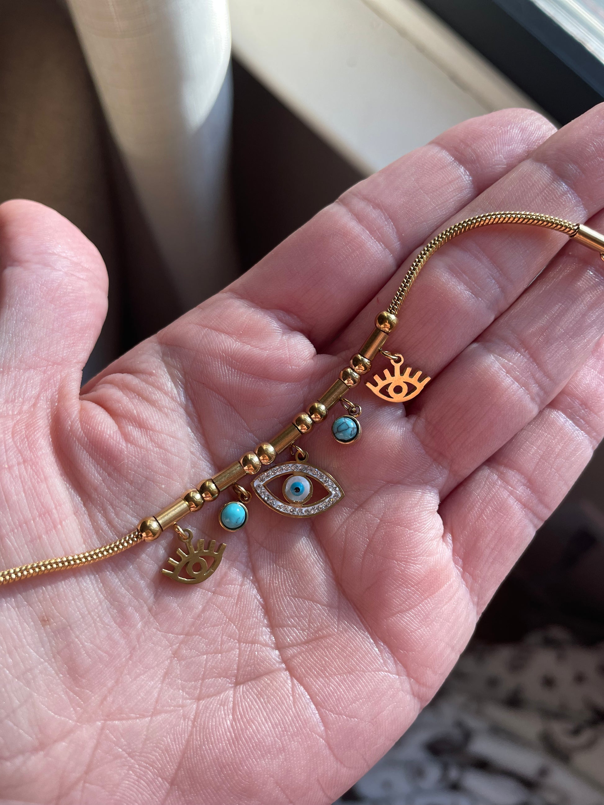 Evil Eye Rope Clasp Bracelet with Turquoise Accents