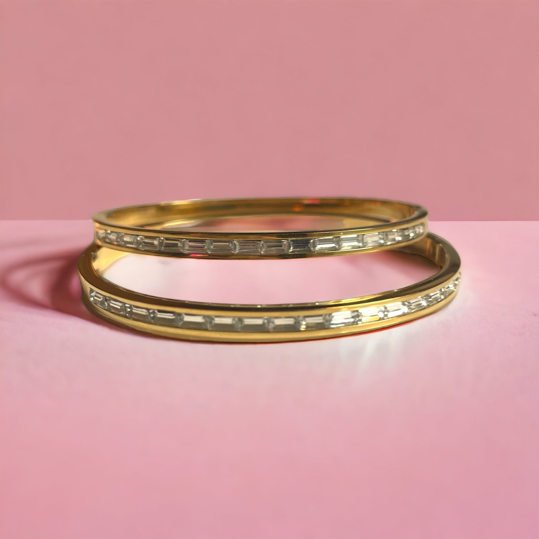 The CHLOE || Half moon diamond bangle brings a touch of glamour and elegance to any outfit. With its ultrathin design and clear stone embellishments, this bangle is perfect for adding a subtle yet eye-catching detail to your look.