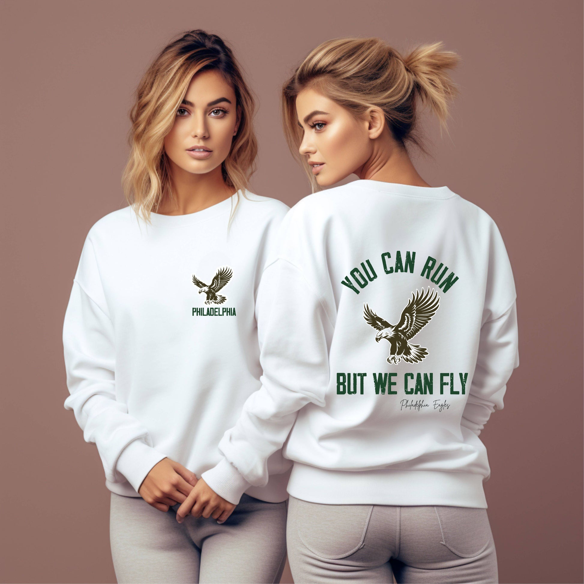 Fly high and fearless in our Philadelphia Eagles We Can Fly Crewneck. This bold crewneck features the powerful statement "you can run but we can fly", inspiring you to take risks and reach new heights. With a comfortable fit and statement-making design, this crewneck will make you stand out while you conquer any challenge. Go Eagles!