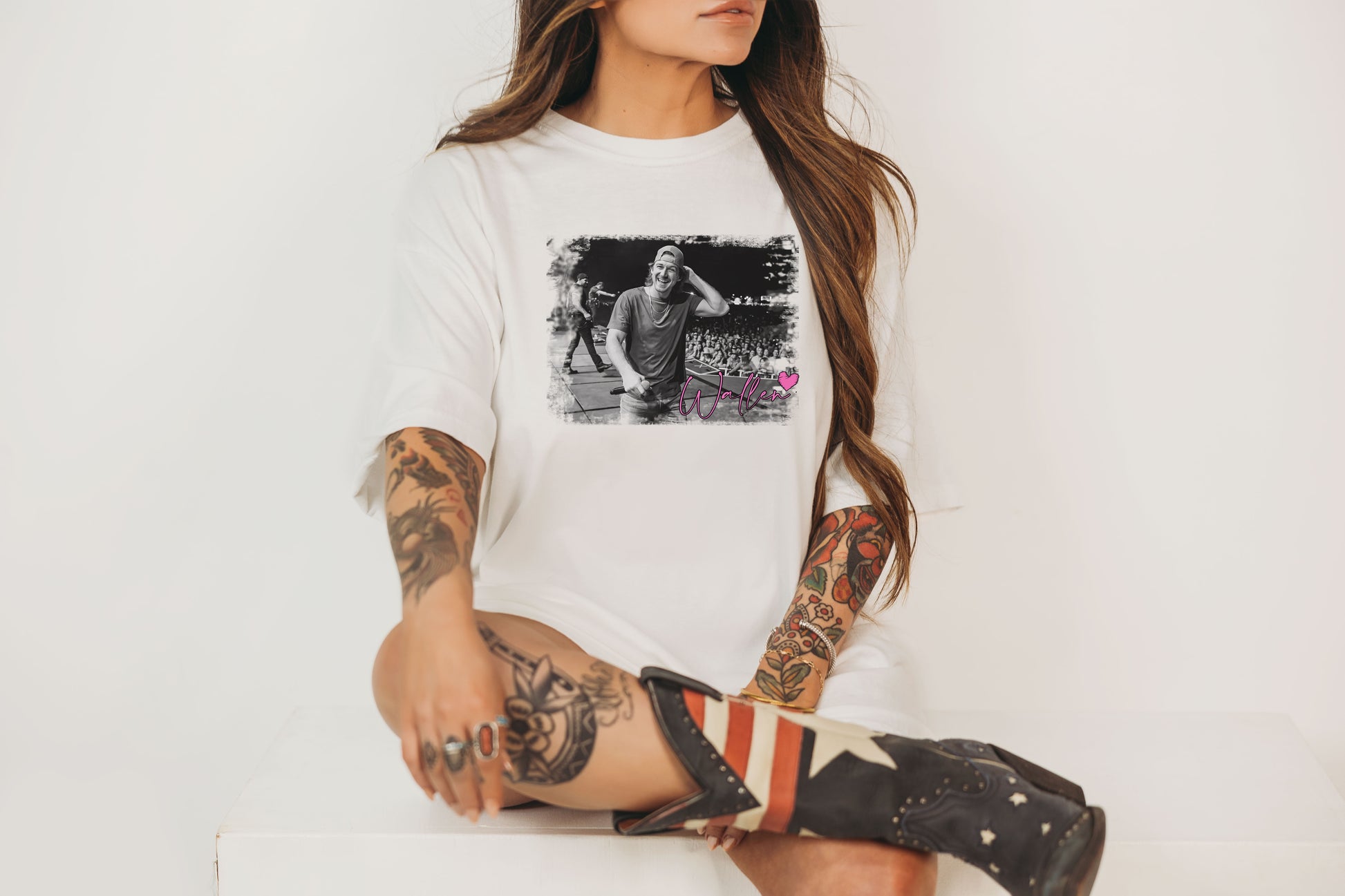 Morgan Wallen Tshirt featuring black and white tour photo design